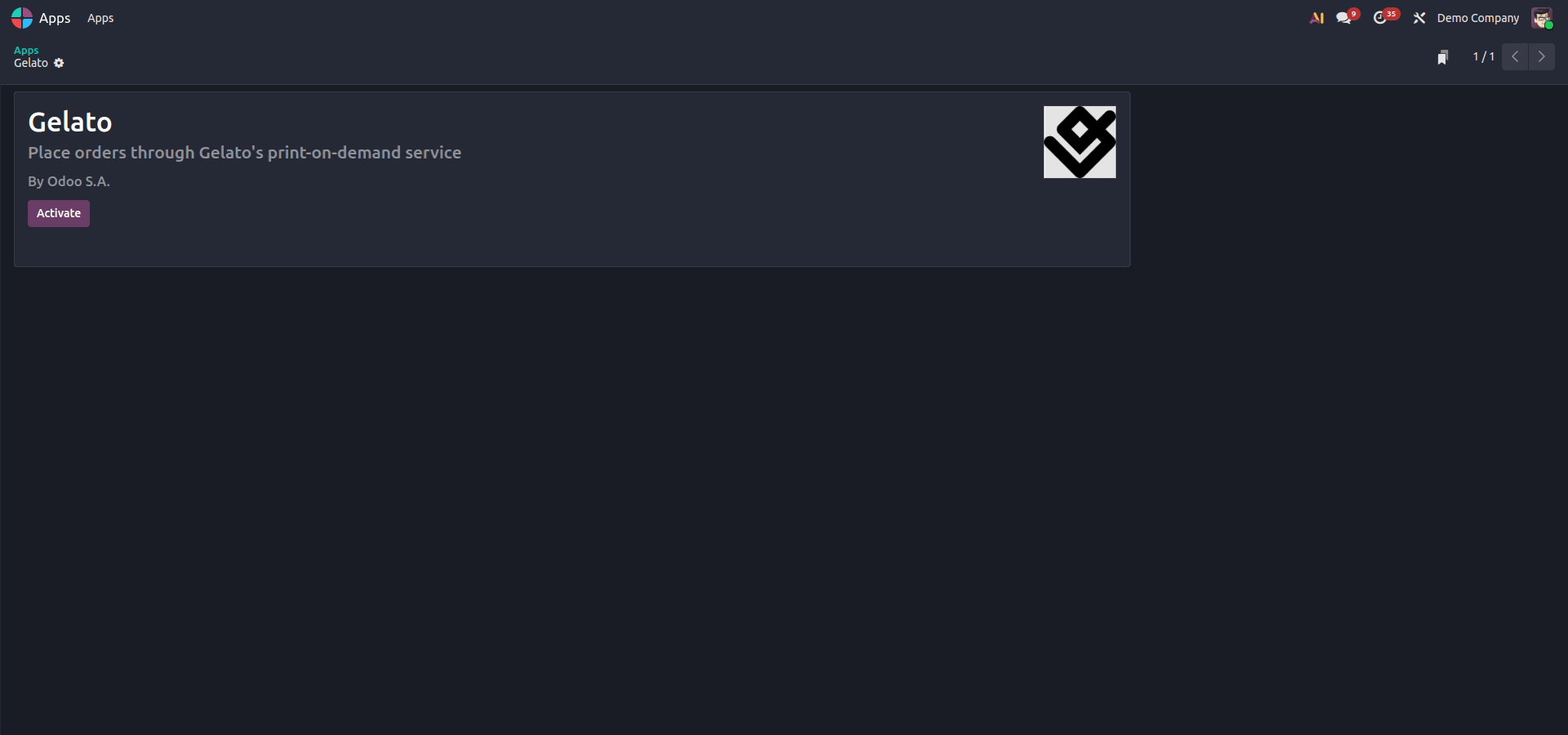 Seamlessly connect Odoo with Gelato, enabling print-on-demand services directly from your system (available from version 18.0).
