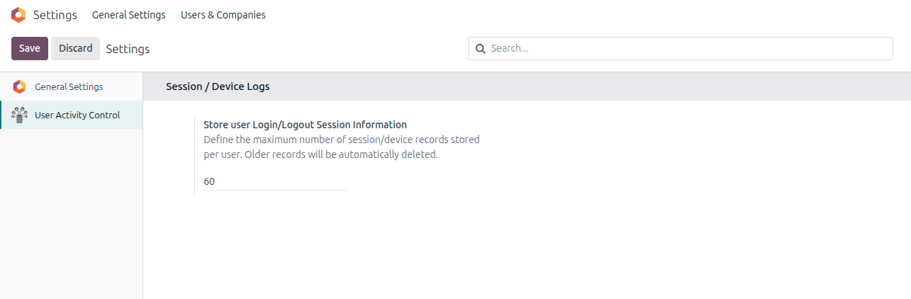 - Set Maximum Session Records: In Settings > User Session Control → configure “Store user Login/Logout Session Information” to limit how many sessions per user are stored. Oldest logs auto-delete.
