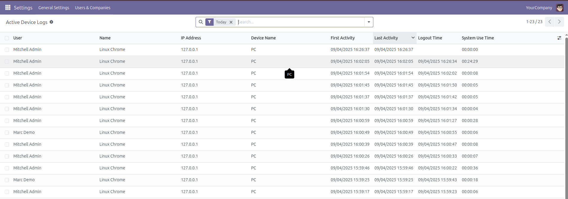 From tracking device information to enforcing logout policies, this app helps improve both security and accountability in your Odoo system.